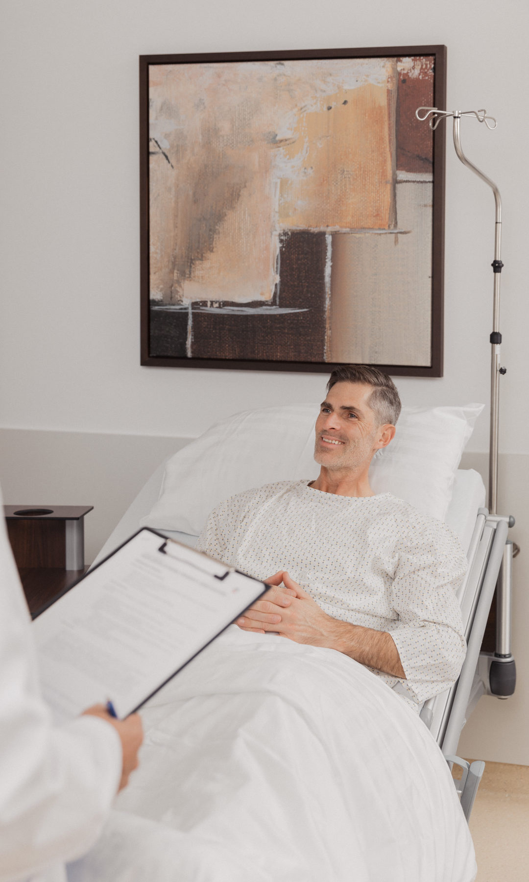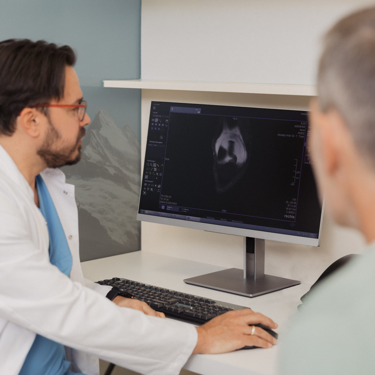 We take our time to discuss the find­ings with you. Our doctors will present any neces­sary further diag­nos­tic steps and treat­ment options to you. We will work with you to decide the best possi­ble treat­ment strategy.