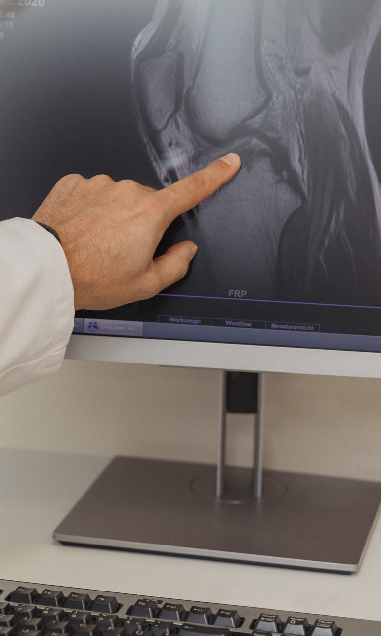 - Injuries or changes in the joint caused by an accident (traumatic), e.g. cartilage damage, torn ligaments, meniscus injuries,…